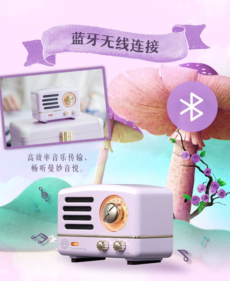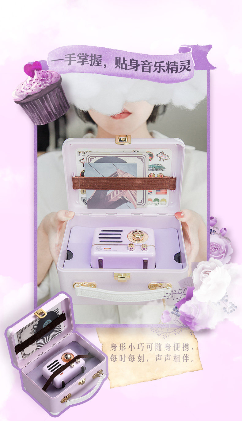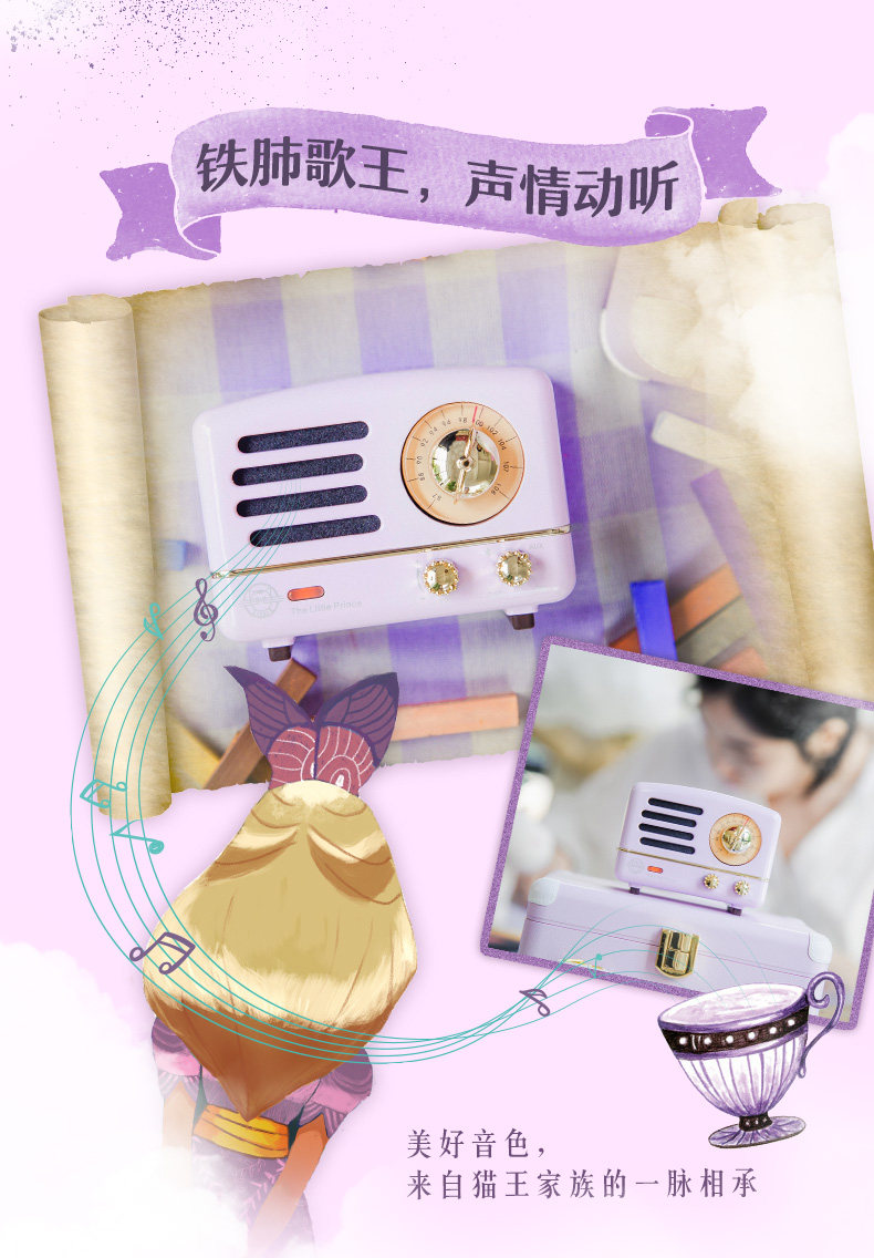 猫王音响 Маленький принц Алиса Пурпурная динамика Bluetooth Mini маленький радио -ретро беспроводной домашний пользователь