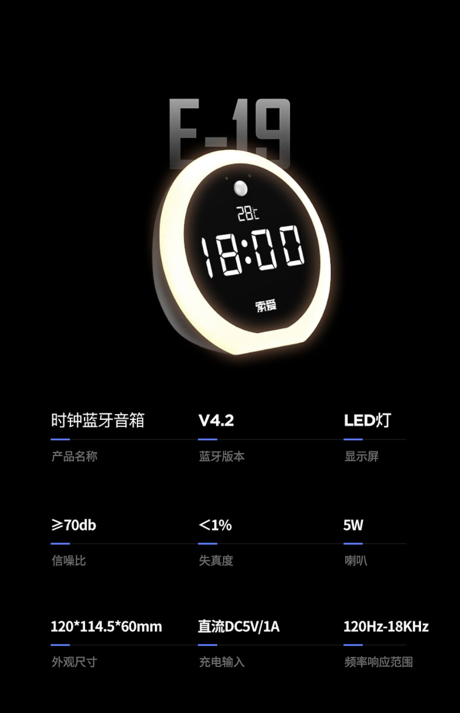索爱 Колонки, большая коробка, портативный маленький мобильный телефон, ночник, E19, bluetooth, 3D, креативный подарок