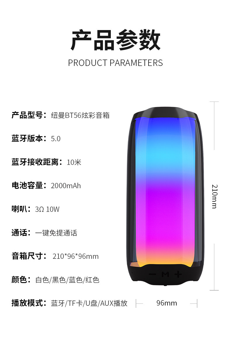纽曼 BT56 Новая сеть красного громкоговорителя Bluetooth красочный световой свет беспроводной аудио -руку с портативным басовым оружием домохозяйства