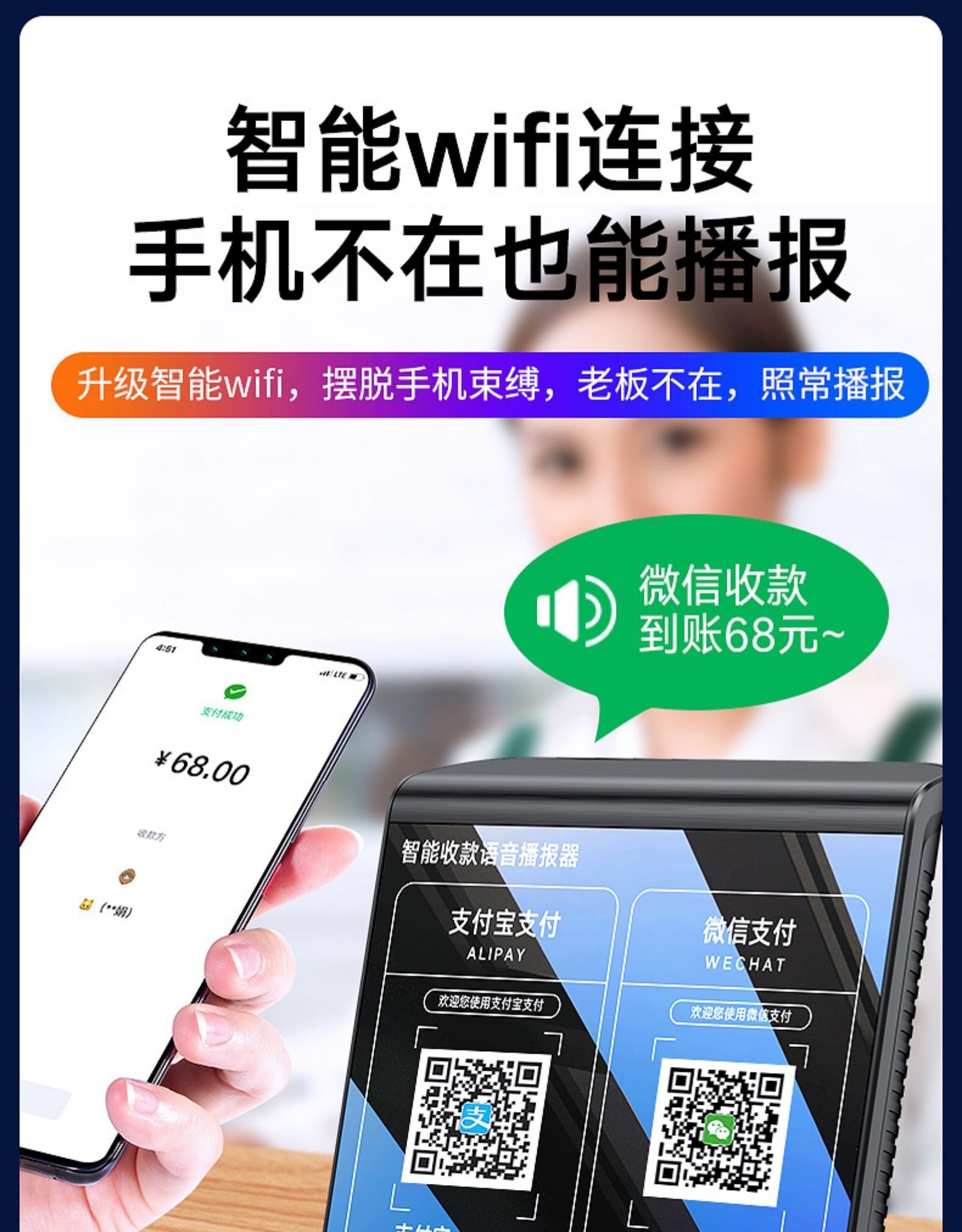 Обновите приемной аудио двухмерный код Voice Voice Trowcaster, чтобы собрать деньги и платить Bluetooth
