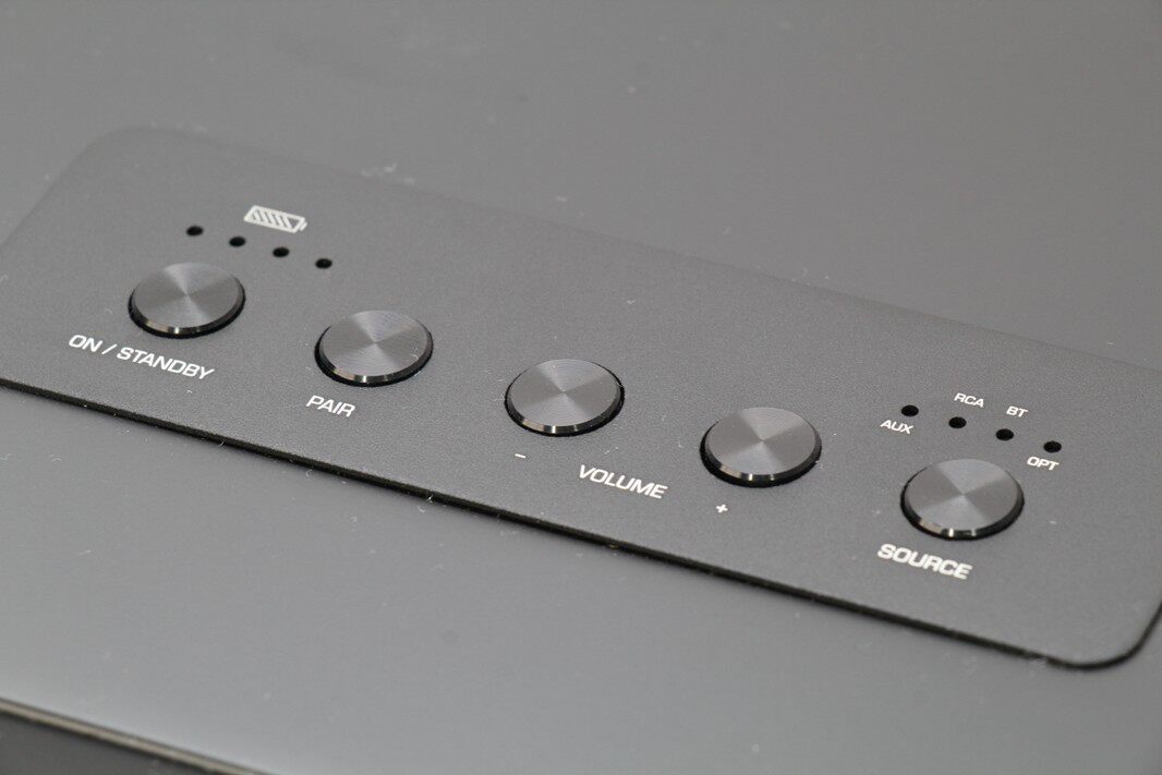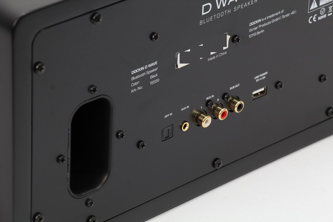 Поддерживает Bluetooth, RCA (Lotus), AUX (3,5 мм), OPTICAL (оптическое волокно), поддерживает зарядку через USB и может быть подключен к внешнему активному сабвуферу.