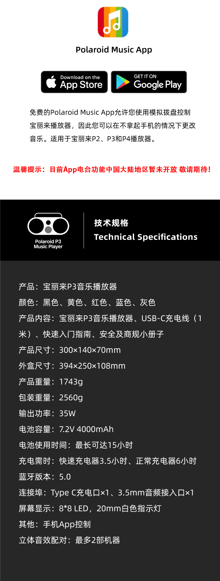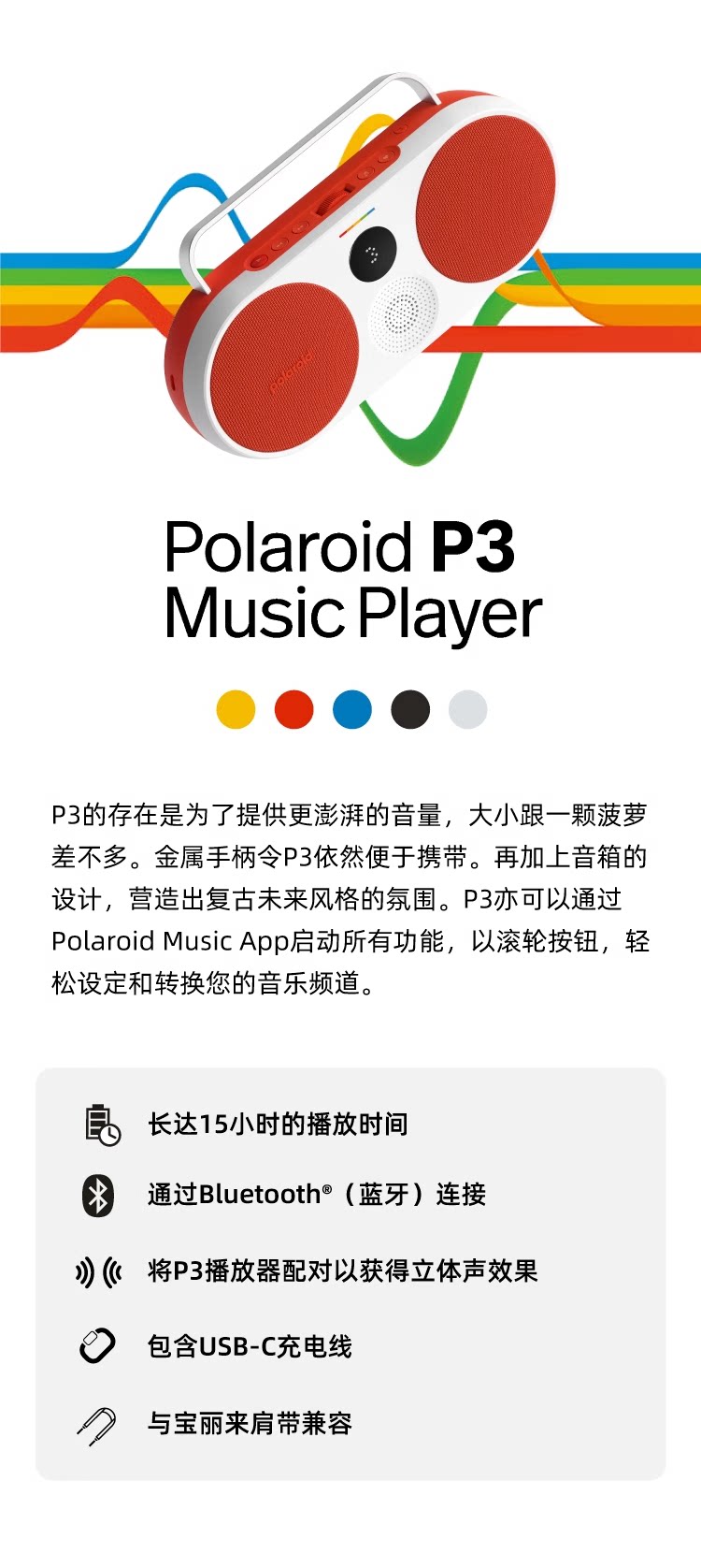 Polaroid, мегафон, беспроводные портативные колонки, P3, bluetooth, 5 цветов, подарок на день рождения