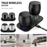 1) Поддержка: Bluetooth, TWS 2) TWS Bluetooth Функция: поддержка 2 динамика беспроводного соединения, истинная стерео 3) с зарядной базой 4) Материал: алюминиевый сплав + ABS + Силика. Дом 6) Размер динамика: φ 49.3*46 мм 7) Цвета: черный, серебро, розовый, золото 8) Поддерживайте бесплатно, когда вызов ответа доступен