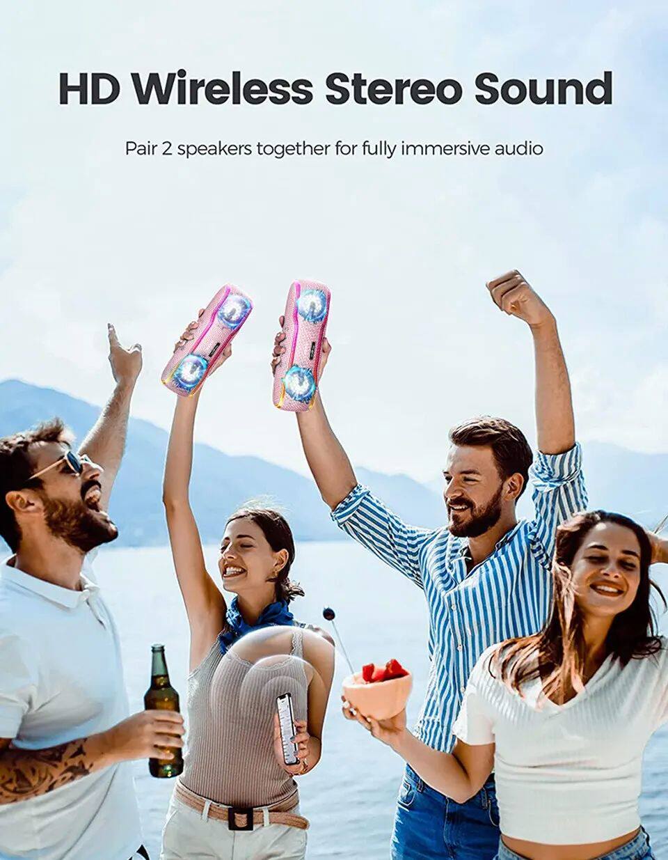 • Водонепроницаемый:Этот динамик водонепроницаемый, что делает его идеальным для отдыха на свежем воздухе, таких как кемпинг и пикники.