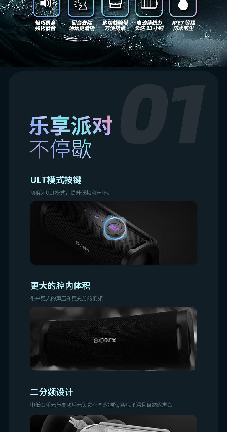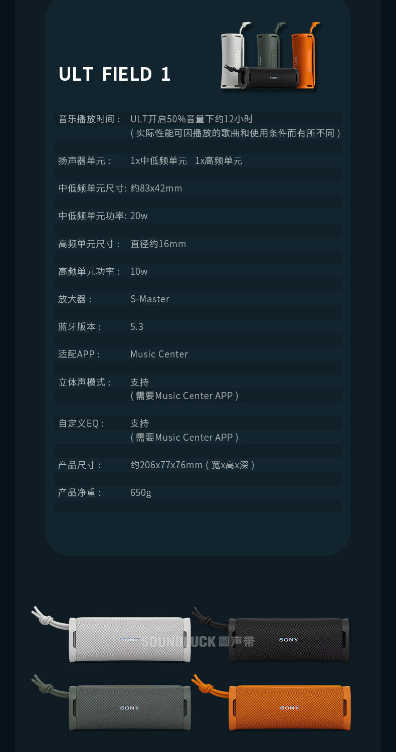 Sony/索尼 ULT FIELD 1 Bass Беспроводной Bluetooth Портативный водонепроницаемый динамик Круглый саундбар, лицензированный