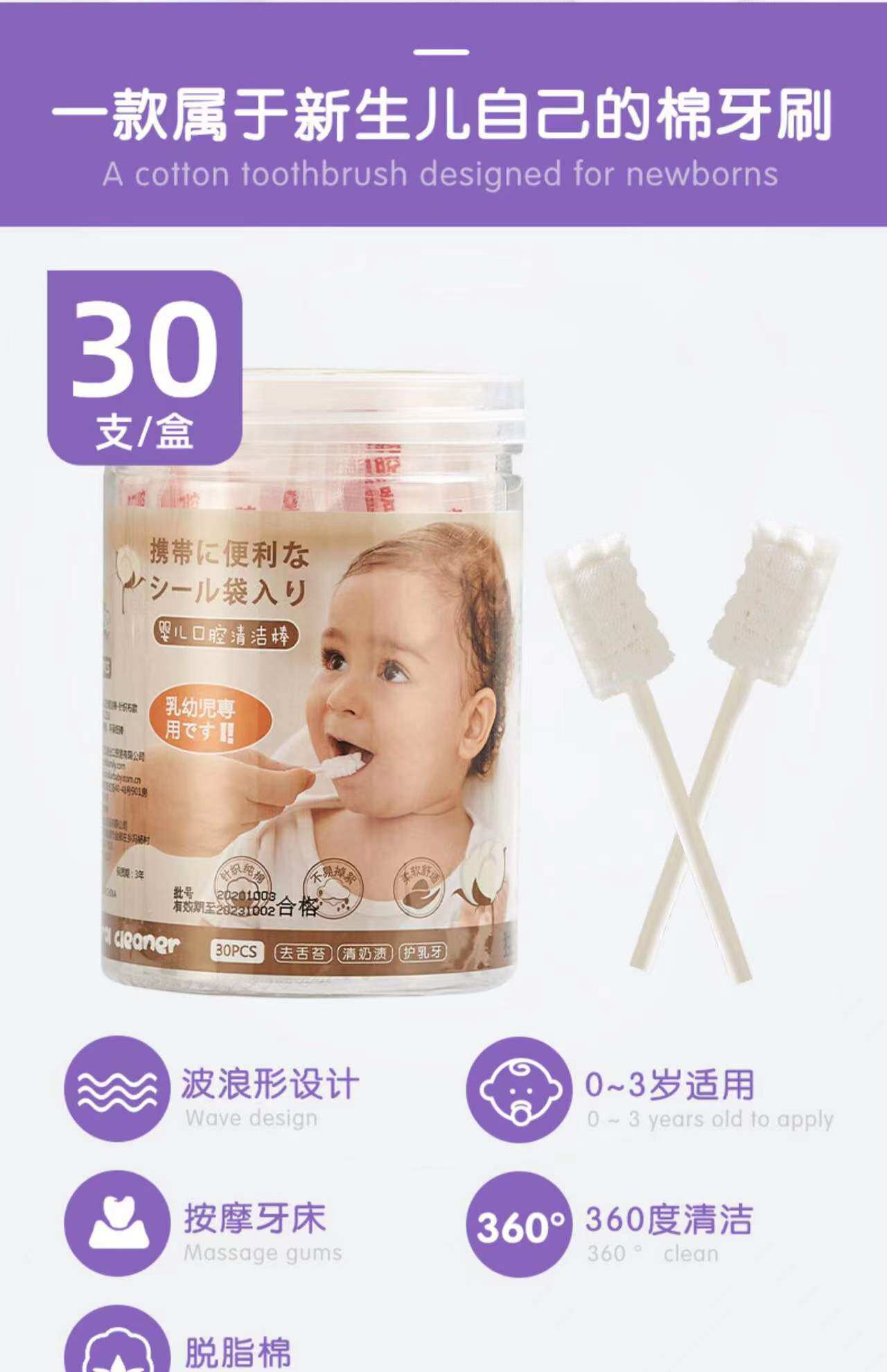 Детские оральные гигиенические ватные палочки для новорожденных, марлевая чистящая палочка, зубная щетка, 0-3 лет