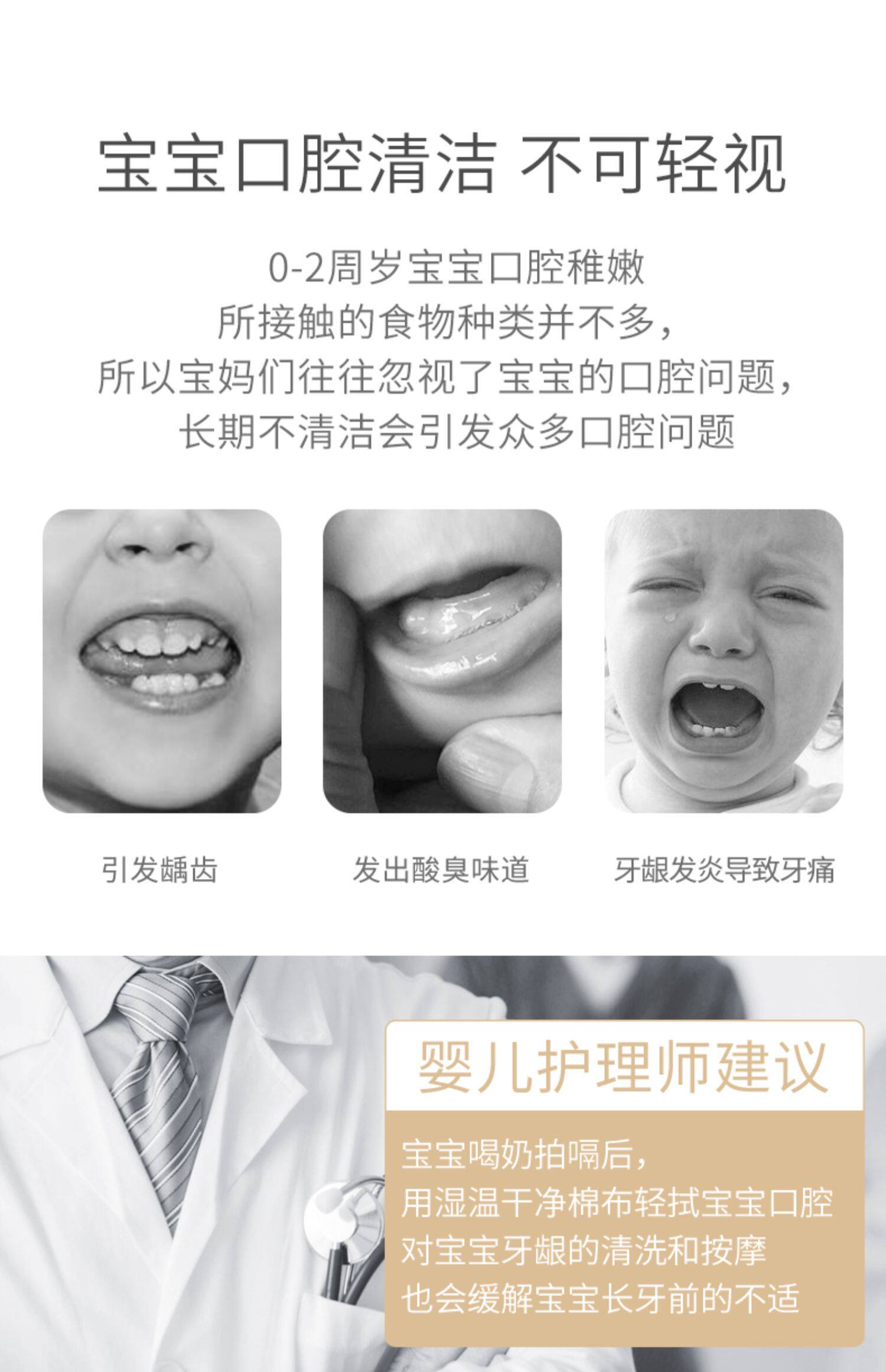 Детские оральные гигиенические ватные палочки для раннего возраста для новорожденных, марлевая детская зубная щетка, пирсинг для языка, 0-2 лет