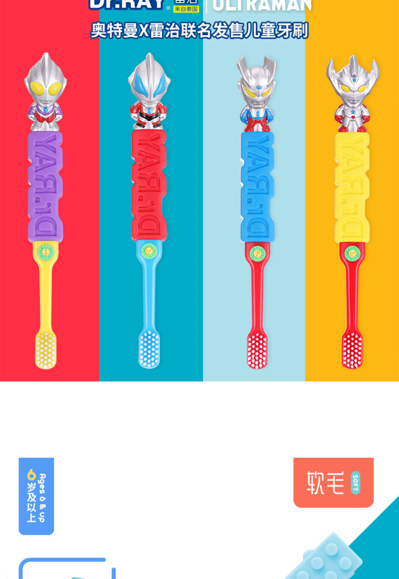 雷治 Ultra, мягкий Ультрамен Тига, детская мультяшная зубная щетка для мальчиков для раннего возраста, 3-6-12 лет