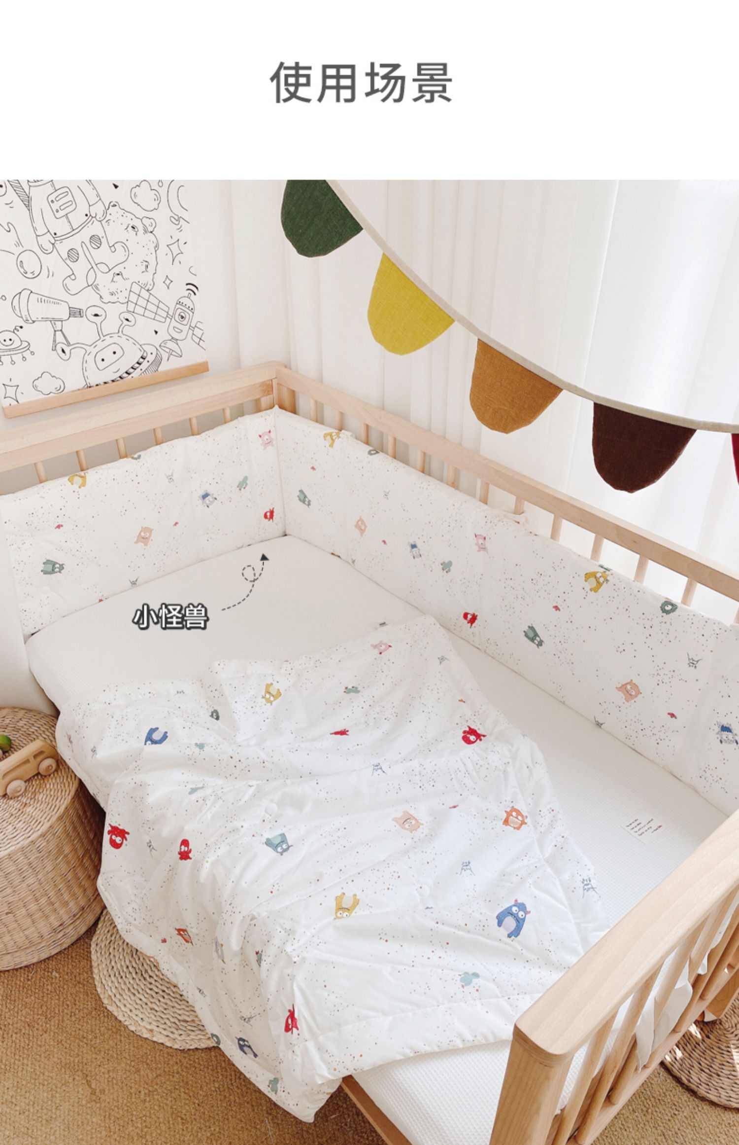 爱予宝贝 Детская длинная хлопковая лента для приставной кровати, защита от столкновений, можно стирать