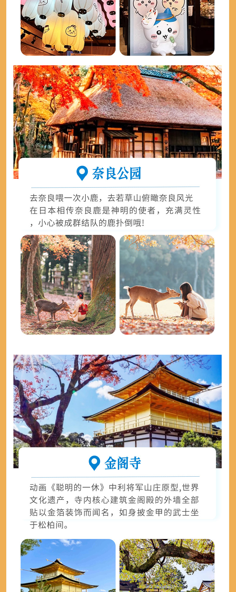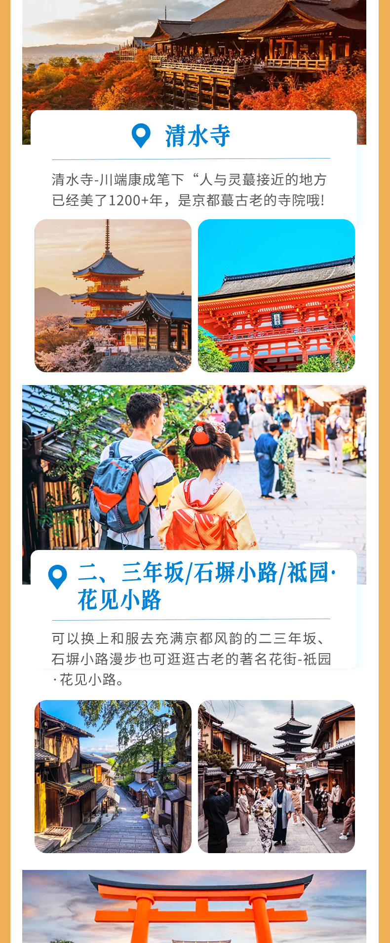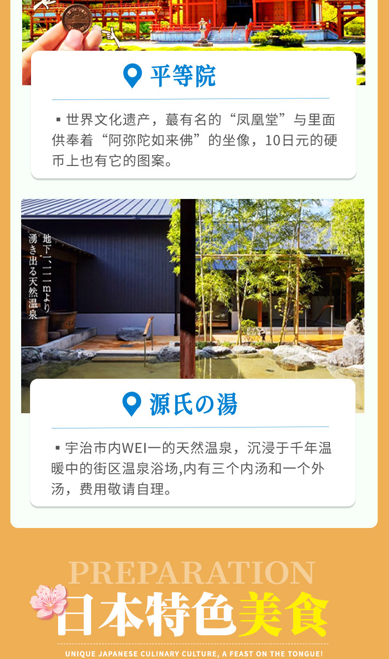 | Тип пакета: | Милый олень Нара Храм Киёмидзу Фусими, Горячий источник БНара Удзи Матча, F Киото Кифунэ Арасияма, C Горячий источник Арасияма Сандзэнин в Киото, ДНара Фусими Инарасияма, Традиционный японский храм Кинкакудзи в ЭКиото. |