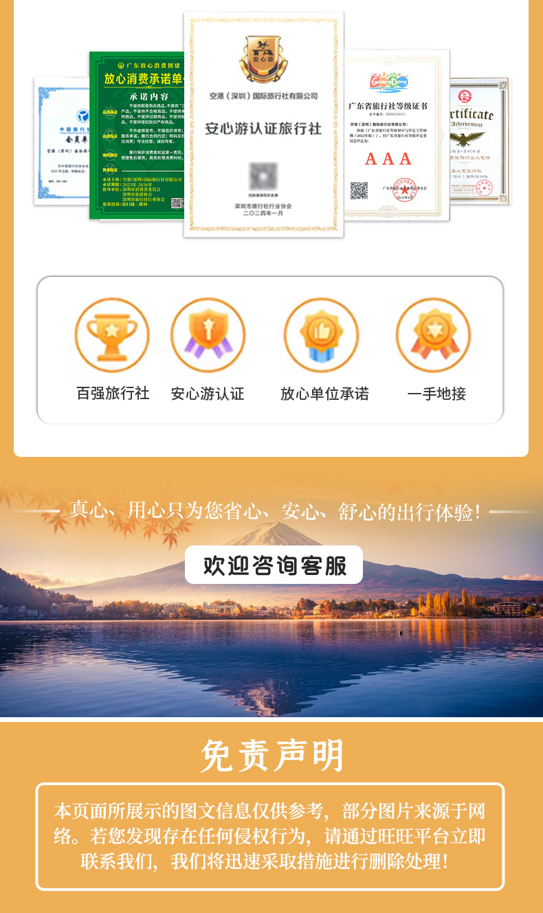 [Особое напоминание] Из-за большой разницы между межпиковым и пиковым сезонами пакетный маршрут должен соответствовать необходимому количеству людей для формирования группы.Если группа не может быть организована, мы уведомим вас за 1-2 дня заранее, чтобы скорректировать дату или изменить маршрут (возврат средств за большее, чем будет оплачено за меньшее), или обе стороны не несут ответственности за отмену.Делая фотографию, вы подтверждаете свое согласие с этим правилом. Благодарим вас за понимание и сотрудничество!