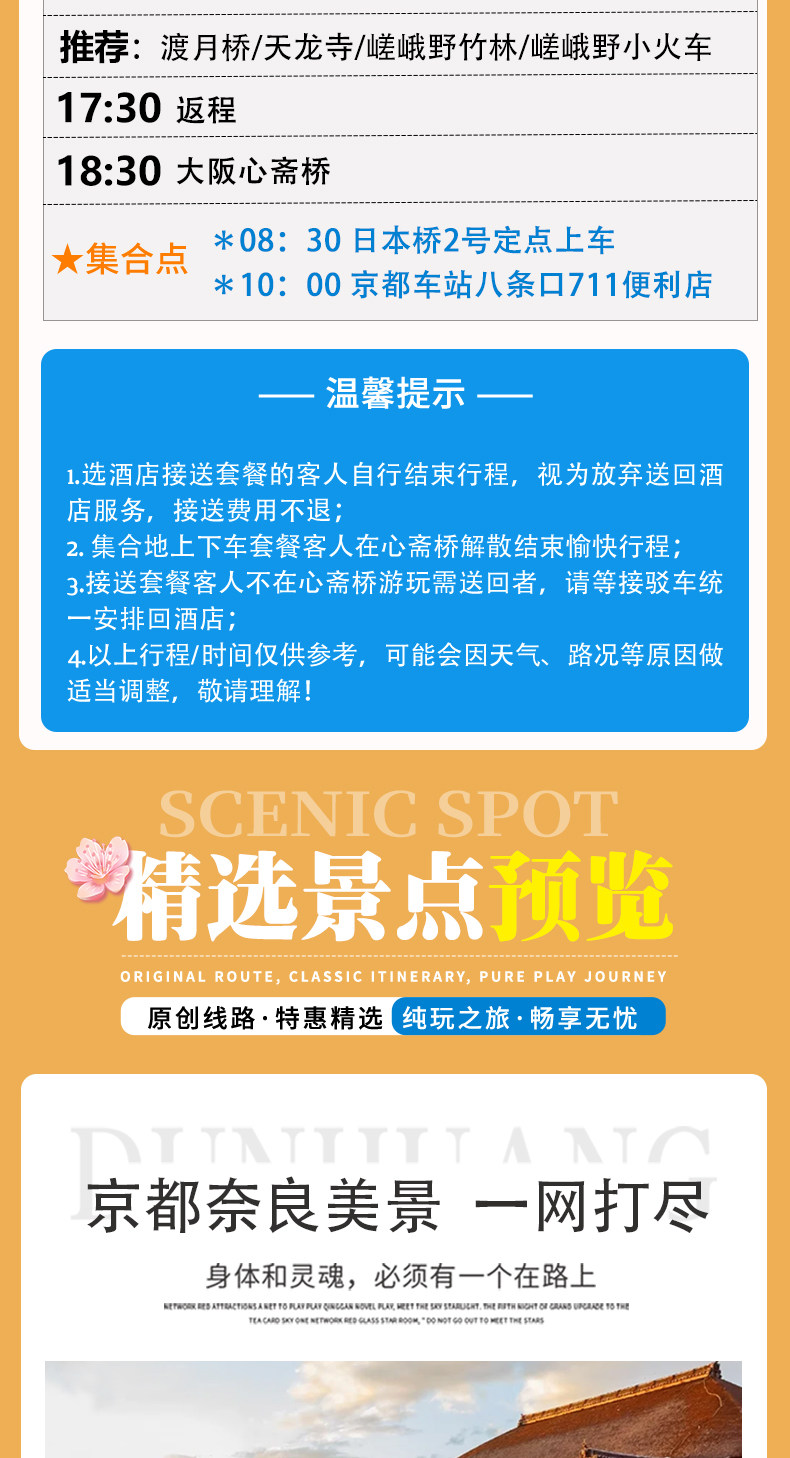 [Особое напоминание] Рабочее время японских водителей ограничено 10 часами.Маршрут может быть скорректирован в зависимости от дорожных условий, погоды, праздников и т. д., время тура может быть сокращено или посещение достопримечательностей может быть отменено без компенсации, спасибо за понимание.Спасибо за вашу поддержку, мы сделаем все возможное, чтобы поездка прошла гладко и вы наслаждались поездкой!
