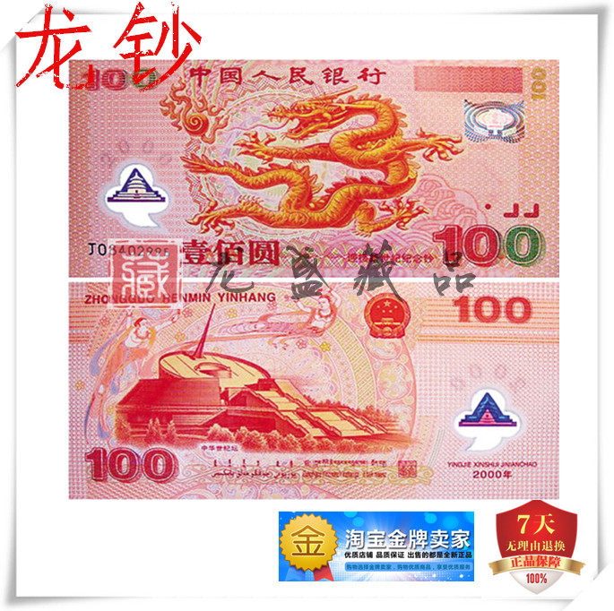 Century Dragon Banknote 2000 Мемориал Дракона тысячелетия тысячелетие тысячелетие Дракона банкнота пластиковый дракон банкнот 100 Юань Дракон банкноты Рейтинг валюта банкноты банкноты