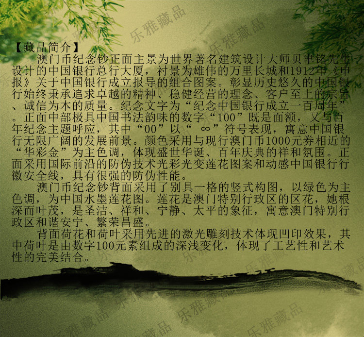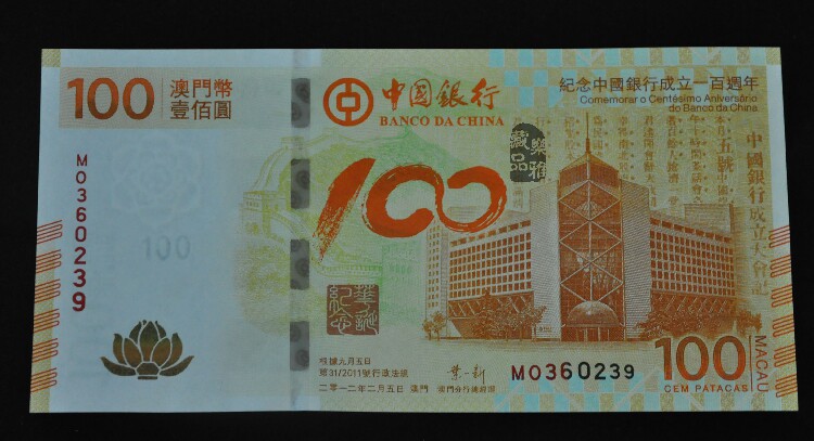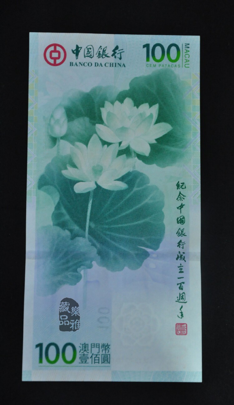 100 -летие создания Lotus Banknotes China Bank Macau Macau Lotus Macau Boc 100 Yuan Banknotes