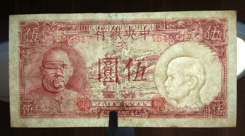 Центральный банк Китайской Республики Центральный банк 5 Юань пять Юань Вуюань, 30 -й год Китая, версия Денаро возле новой 549917