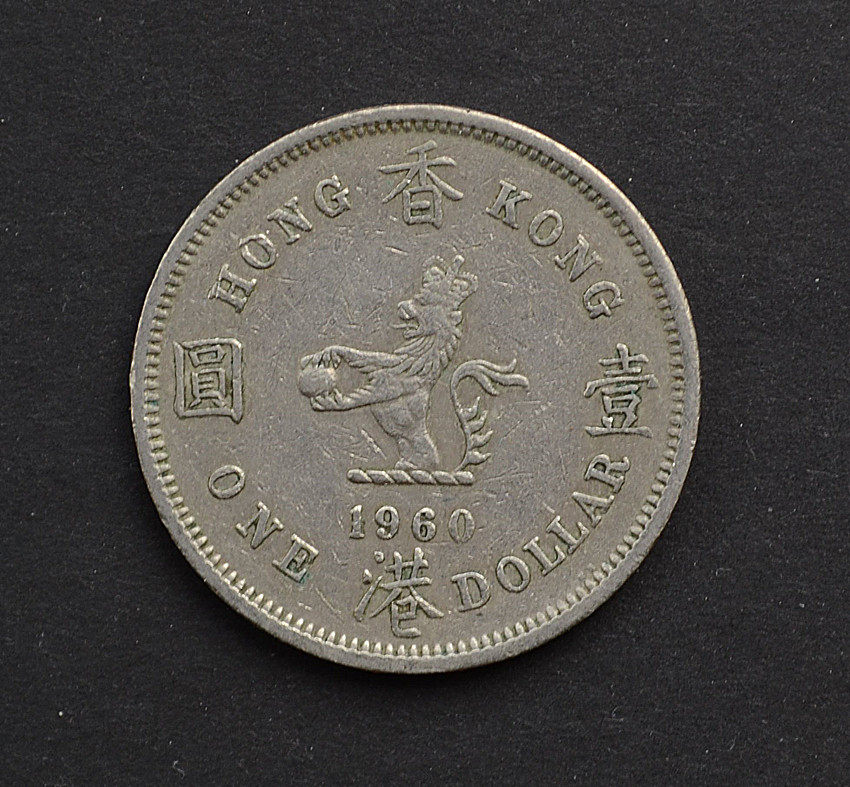 【Китай】 Гонконг 1 Юань Гонконг Доллар Королева Елизаветы Аватар Аватар 1960 г. Честная монета монета