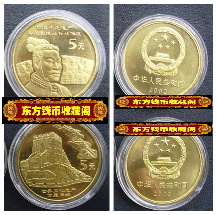 2002 мировое культурное наследие Честные монеты Набор великих стены и терракоттских воинов памятные монеты 5 Yuan Fair Nocial