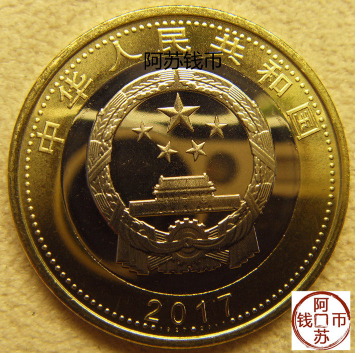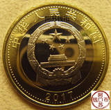 Двойная -колора медного сплава памятной валюты, обратно основной сцены, -это лента, оливковые ветви, военные эмблемы и“1927-2017” композиция и содержит“90” слова.Основная сцена суеверная&Ldquo; 90 -летие армии -основателя китайской народной армии” слова ниже - поверхность“ 10 юань” и отличный рисунок стены.