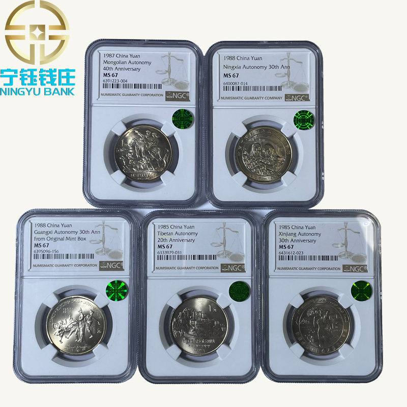 Автономная региона памятная монета Ningxia Tibet, Синьцзян, Гуанси Внутренняя Монголия NGC67, рекомендованная тибетская зеленая метка без обслуживания