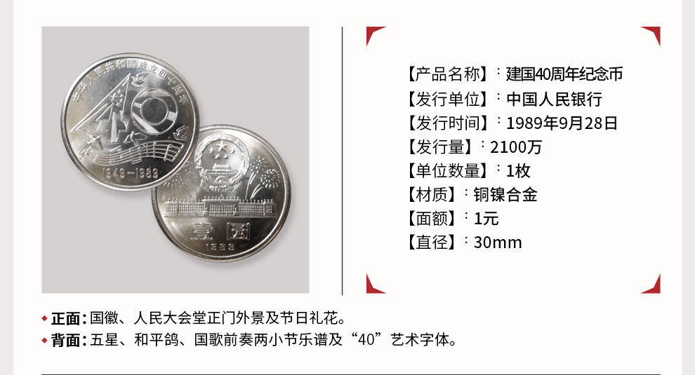 [Новая разборка рулона] 1989 г. 40 -летие основополагающей монеты Китайской Народной Республики в 1989 году