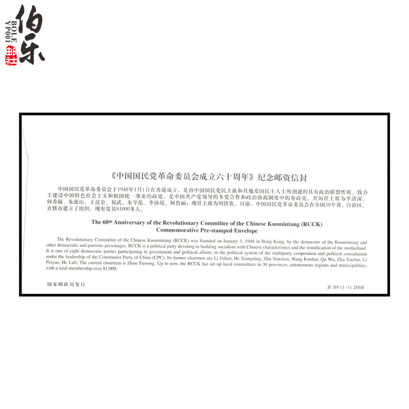 JF89 2008 60 -я годовщина революционного комитета китайского комитета Kuomintang китайского комитета Kuomintang