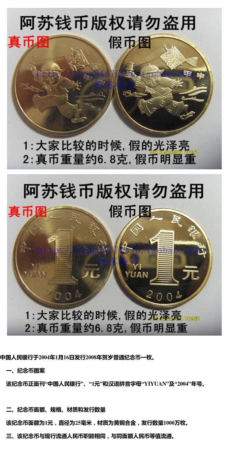 Azu Coin*Новый оригинальный свет 2004 Новая годоватая мемориальная монета китайского зодиака (импортированная круглая оболочка, импортированная с Тайваня)