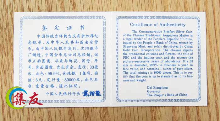 В 1997 году небольшие толстые серебряные монеты Jiqing имеют больше специальных монет (1 унция).