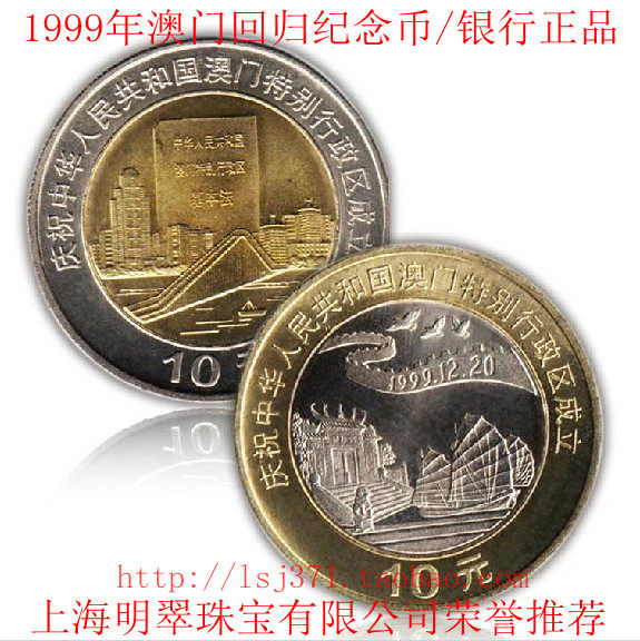 Есть две монеты в наборе монет Китайская Республика «Над внешним кольцом - это слова« Народная Республика Китая »и номер года« 1999 »ниже - это слова года.Внутреннее ядро рисунка на задней части монеты - это павильон Мазу и парусник, расположенный на фоне великой стены и трех мирных голубей; «А внизу - слова" 10 Юань ".Внутреннее ядро на задней части другой монеты - это вид на море Макао и текст «Основного закона Специального административного региона Макао в Китайской Народной Республике»; Основание специального административного региона Макао в Китайской Народной Республике «и нижняя часть - это слова« 10 юань ».