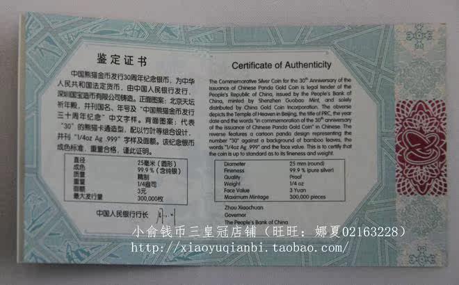 2012 Панда 30 -летие серебряной монеты .1/4 унции. 30 -летие выпуска выпуска золотой монеты китайской панды