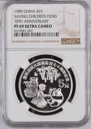 1989 Международный спасательный фонд Детский фонд 70 -летие детей кормить серебряную монету Panda NGC69 Сертификат класса