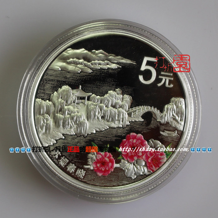 (5) 15,552 грамма (1/2 унции) Круглая памятная монета - изысканные монеты (4), каждая из которых содержит серебро стерлингового серебра 15,552 грамма (1/2 унции), диаметр 33 мм, деноминация 5 юаней, 99,9 % сформировано, максимальное циркуляция составляет 500 000.