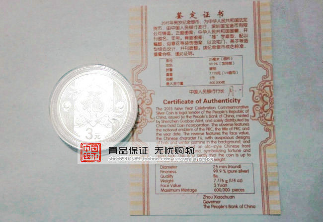 Народный банк Китая должен выпустить серебряную мемориальную монету 2015 года 26 декабря 2014 года. Серебряная памятная монета является юридической валютой Китайской Народной Республики.