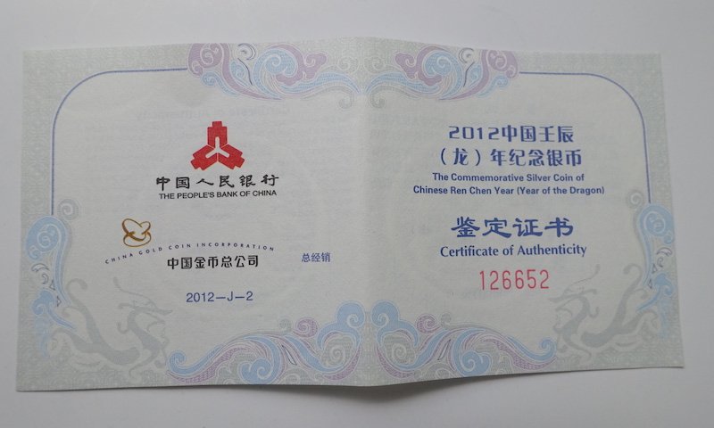 Серебряная монета года 2012 года. 1 унция.