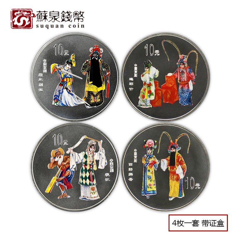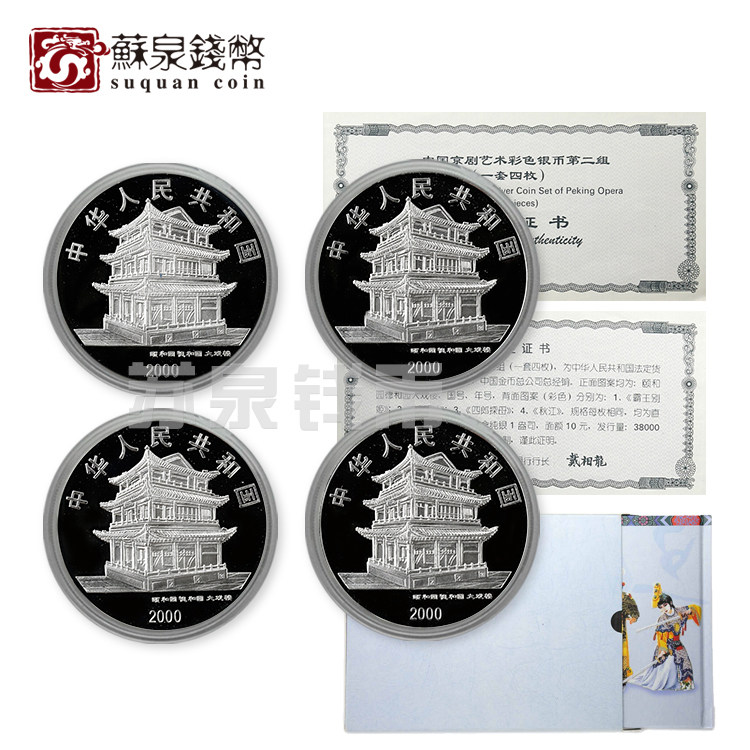 2000 китайский пекивый оперный оперный цвет Цвет Цвет Серебряные монеты 2 комплект 4 комплекта из 4 комплектов из 1 унций оригинальной сертификации коробки Peking Opera Silver Coin