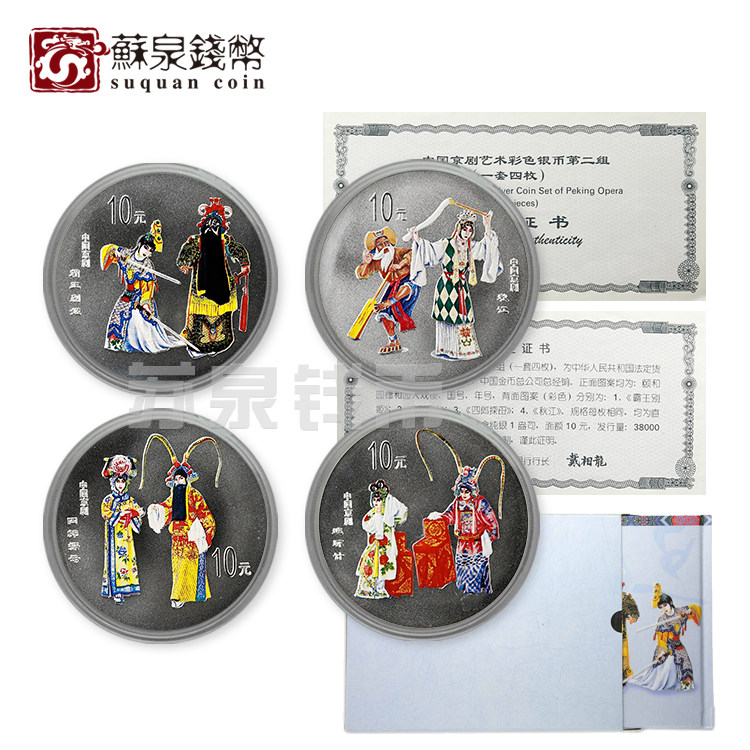 В 2000 году китайское пекинское оперное искусство Вторая группа цветных серебряных монет 4 1 унции серебряных монет Пекинг Оперные Арт Серебряные монеты