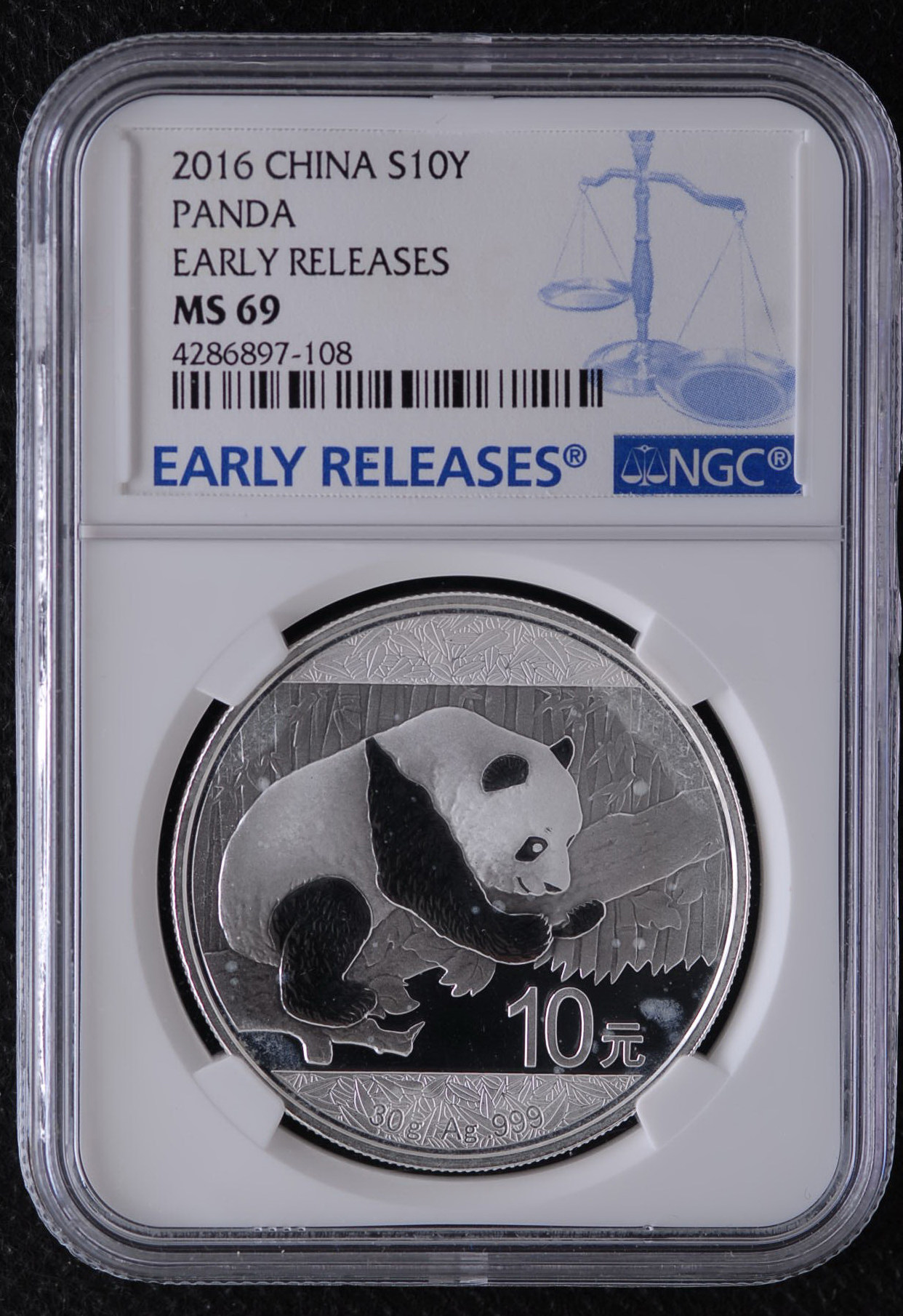 Маленькие фанаты рейтинговые монеты 2016 Panda Panda Silver 1 унция (NGC MS69) с белыми пятнами и белыми пятнами
