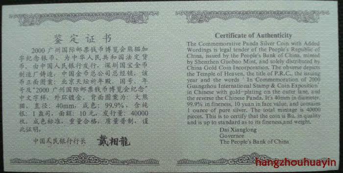 [Huayin Collection] в 2000 году 1 унция двойная металлическая монета одна унция аутентичных