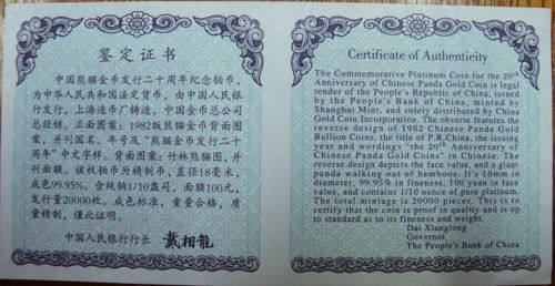2002 1/10 унций Панды Платиновая монета Панда Золотые монеты 20 -й годовщины платиновая платиновая кошка