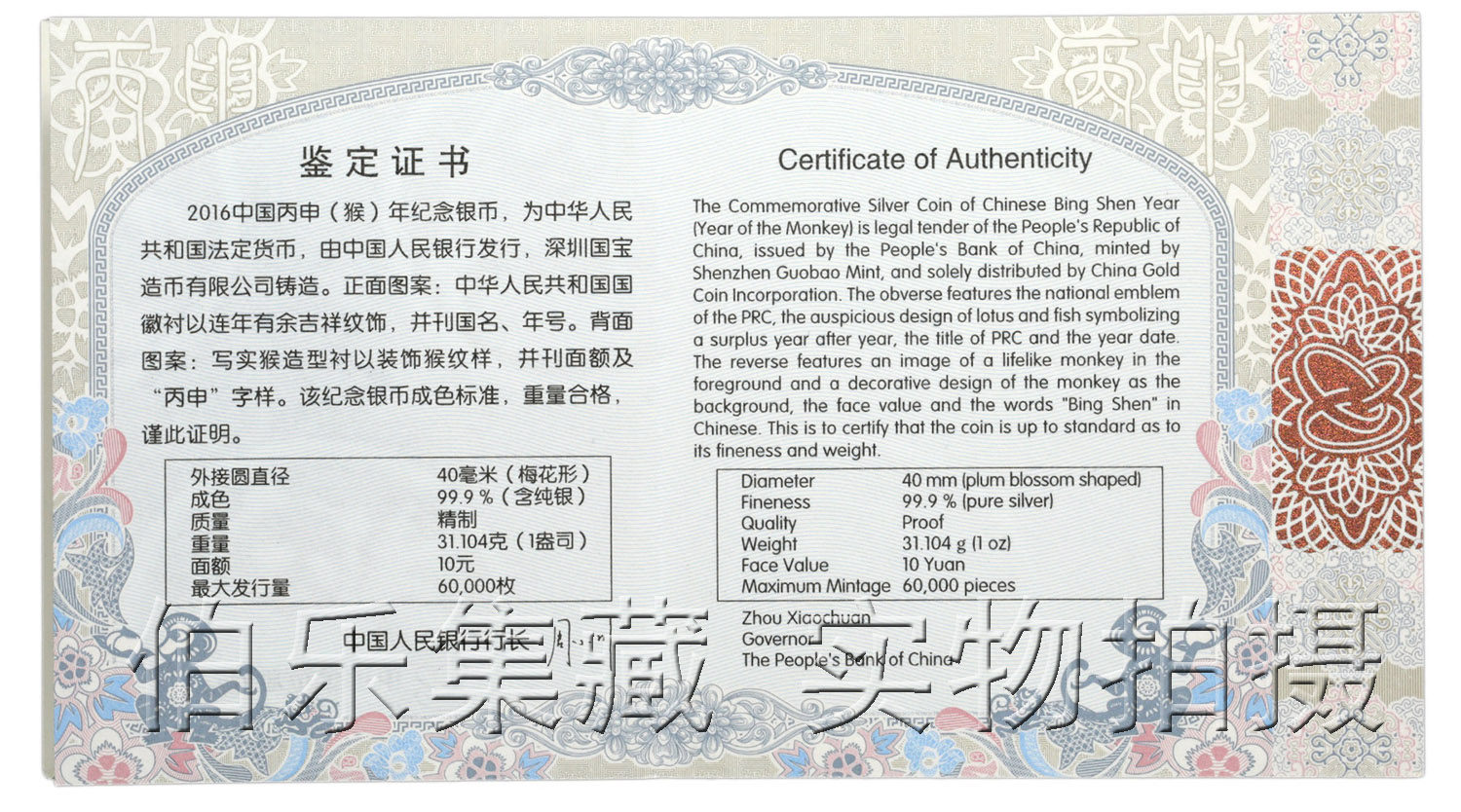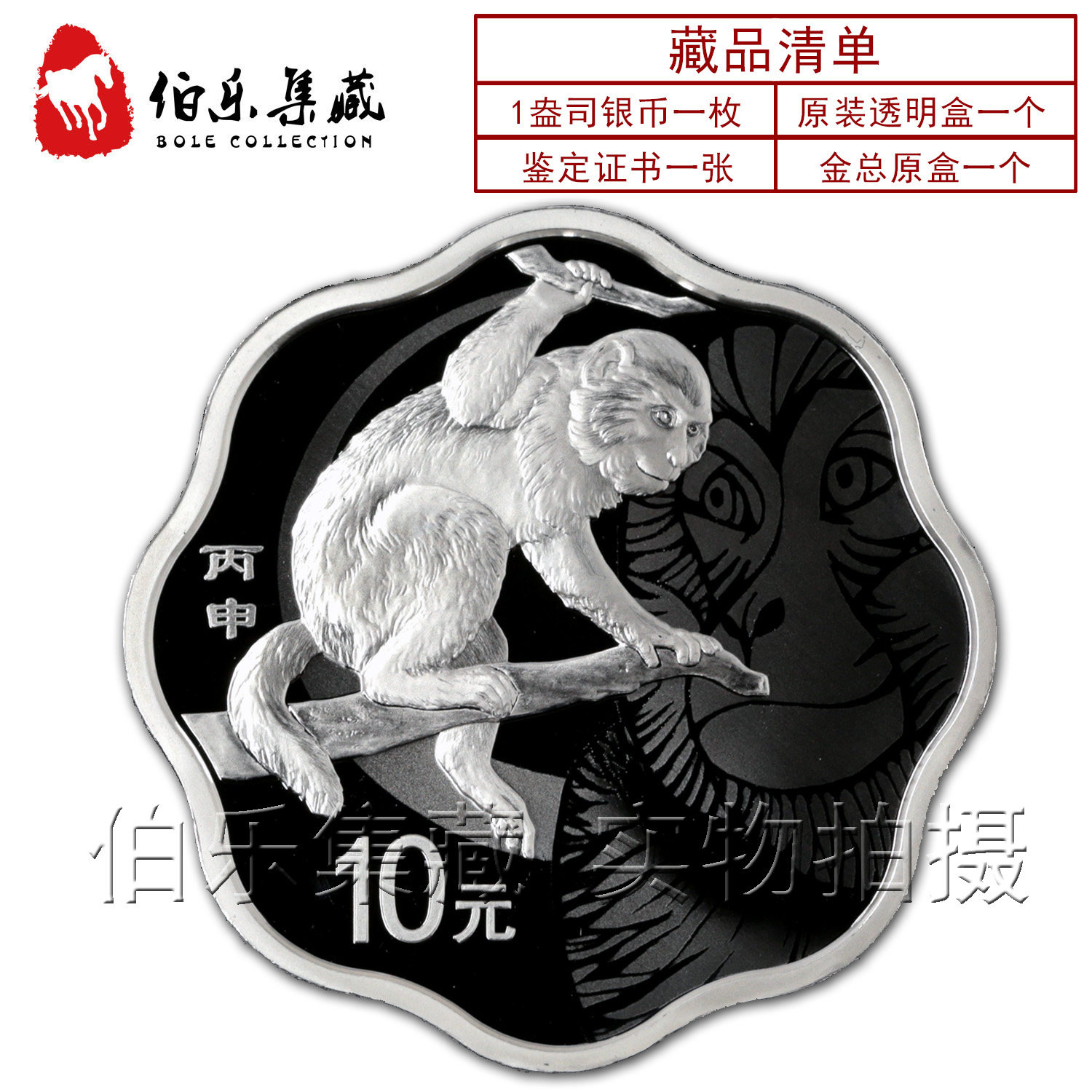 [New Bazhen] Оригинальный сертификат коробки 2016 1 унция Обезьяна Год обезьяны, сливовая серебряная монета с серебряной монетой в форме сливы