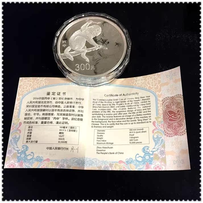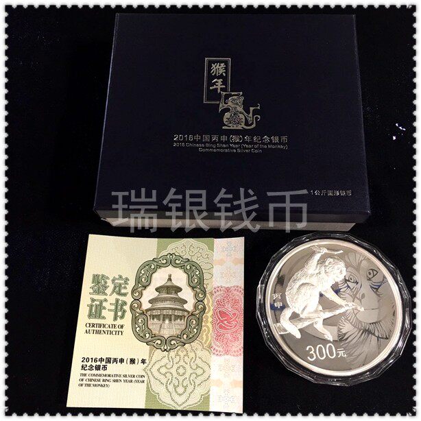 Новый продукт 2016 г. 1 кг обезьян зодиака, серебряные монеты, зодиака -зодиака -серебряных обезьян. Оригинал подтвержденный физический магазин