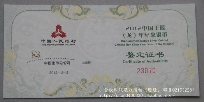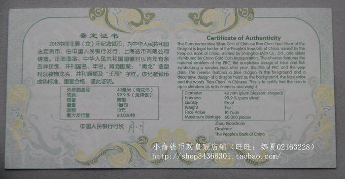 2012 Plum Blossom Dragon Silver Coins.