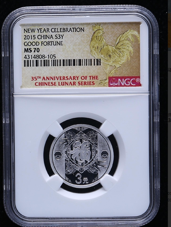 [Присоединяйтесь к Xinlong] 2015 Новый год Серебряная монета Благословение Silver Coin 3 Yuan NGC70 Зодиаки