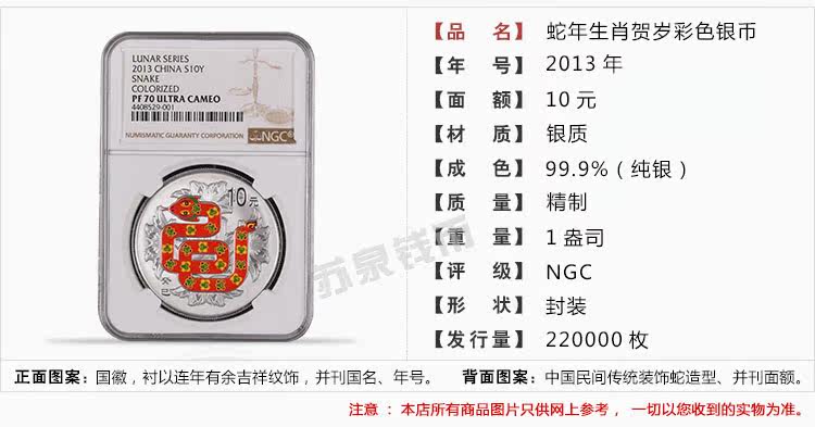 NGC Рейтинг монета 2013 Змея Год Змеи Змеи Зодиак 1 унции серебряной монеты Серебряная змея змея Год серебряной монеты 70 очков