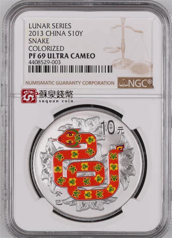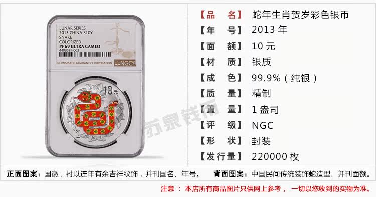 Рейтинг NGC Vurrance 2013 Змея Год Змеиной Цветочной Цветной Серебряной монеты с 1 унцией цветной серебряной змеи 69 очков