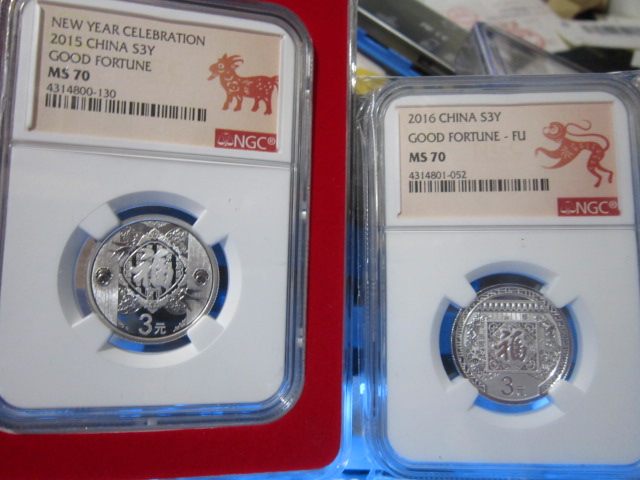 Рейтинг Новогоднее благословение 3 монеты 2015 2016 3 юаня благословение Новогодняя памятная серебряная монета NGC70 пара меток зодиака