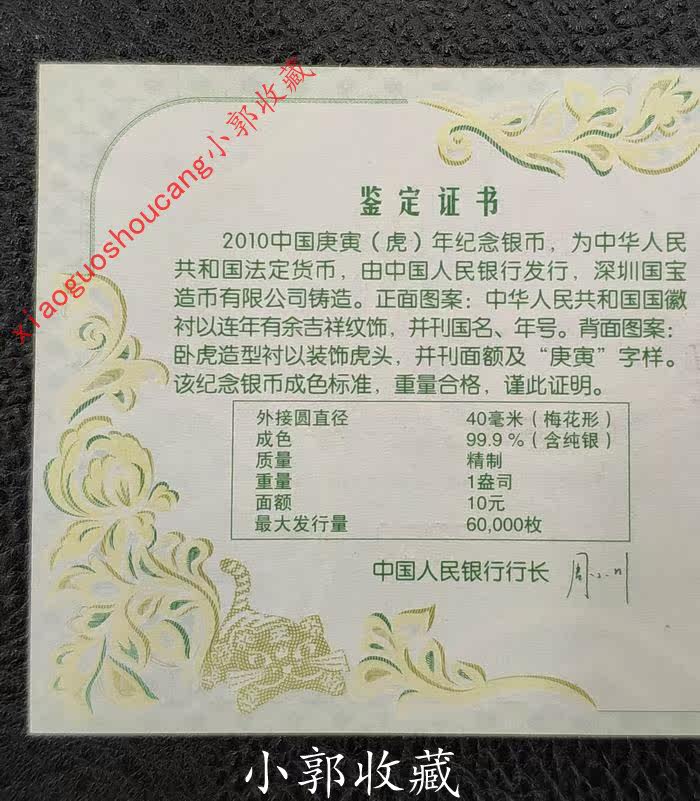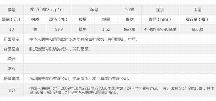 2010 China Gengyin (тигр) аннуитет и серебряная памятная монета 1 унция сливы в форме серебряной монеты.