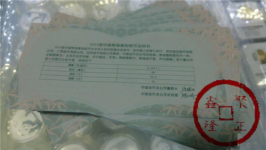 [Присоединяйтесь к Xinlong] Panda Silver Coin 1 унция в 2015 году 10 Юань
