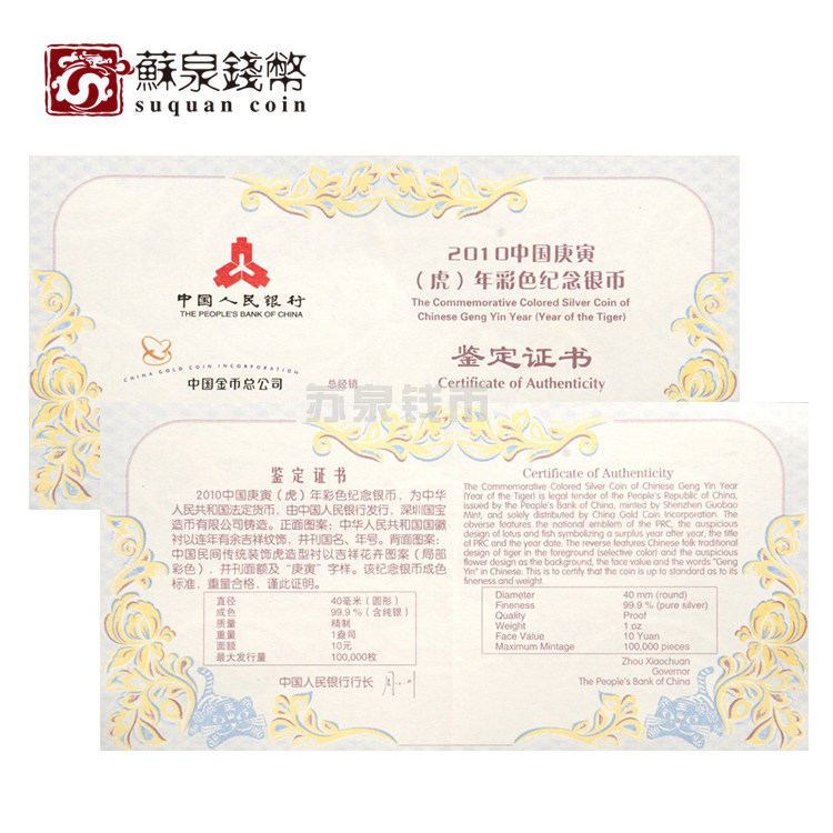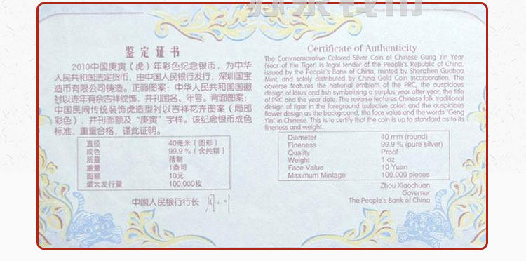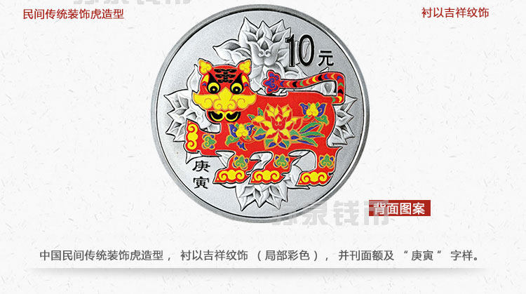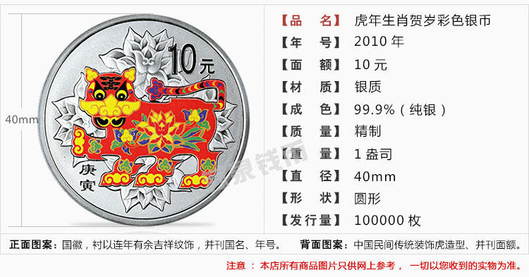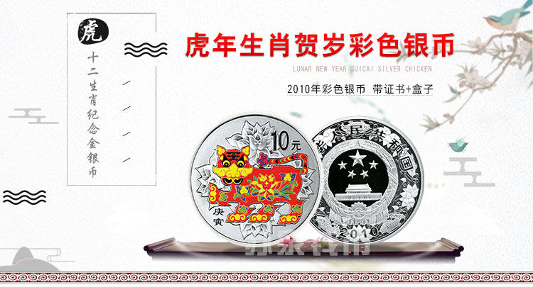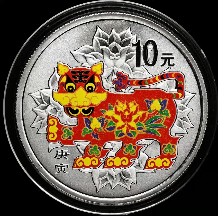 Новый баозхен 2010 Зодиак Цвет Серебряная монета 1 унция Цвет Серебряный тигр Год тигрового года стерлингового серебря