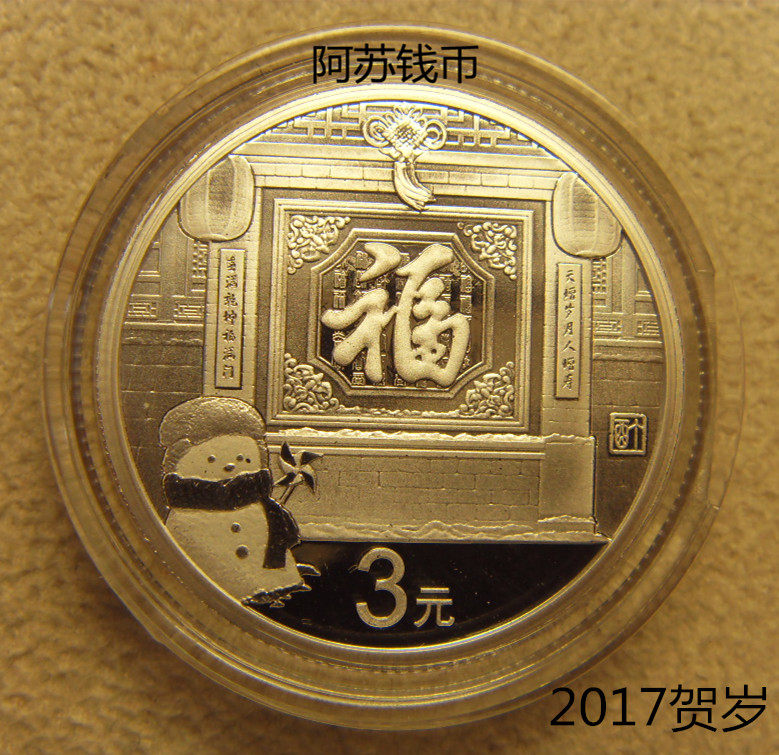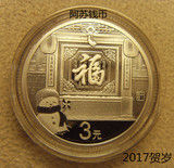 2017 Зодиак Цыпленок 3 Юань Слово Слово Новая Года Серебряная монета 8 грамм 3 Юань благословение китайского новогоднего серебряной монеты