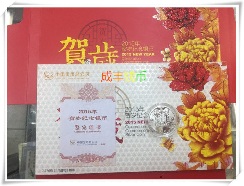Baozhen принести сертификат Pu Book 2015 Fuzi новогодняя серебряная монета 3 Yuan Newge Silver Coin 1